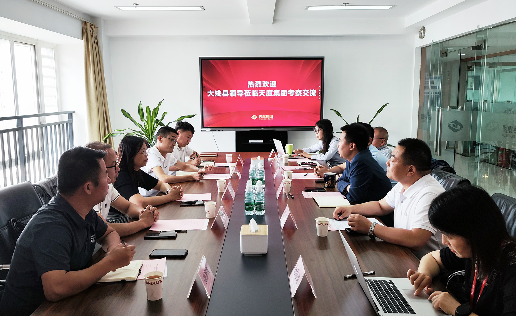 5月14日,大姚縣委常委、常務(wù)副縣長楊曉麗等領(lǐng)導(dǎo)一行到天度集團(tuán)考察,并就數(shù)字經(jīng)濟(jì)項(xiàng)目落地、建立新媒體及影視基地等事項(xiàng)進(jìn)行座談交流。